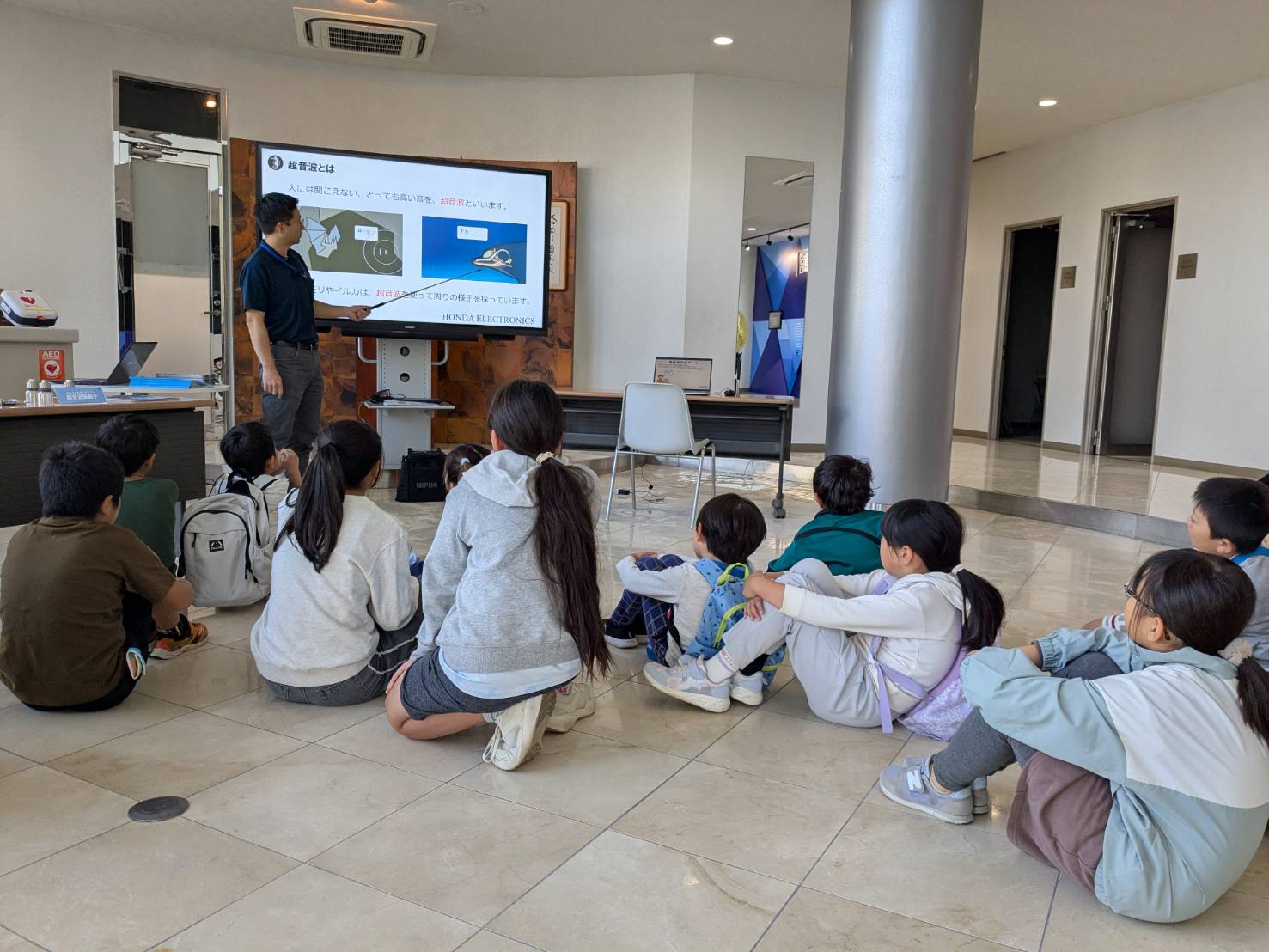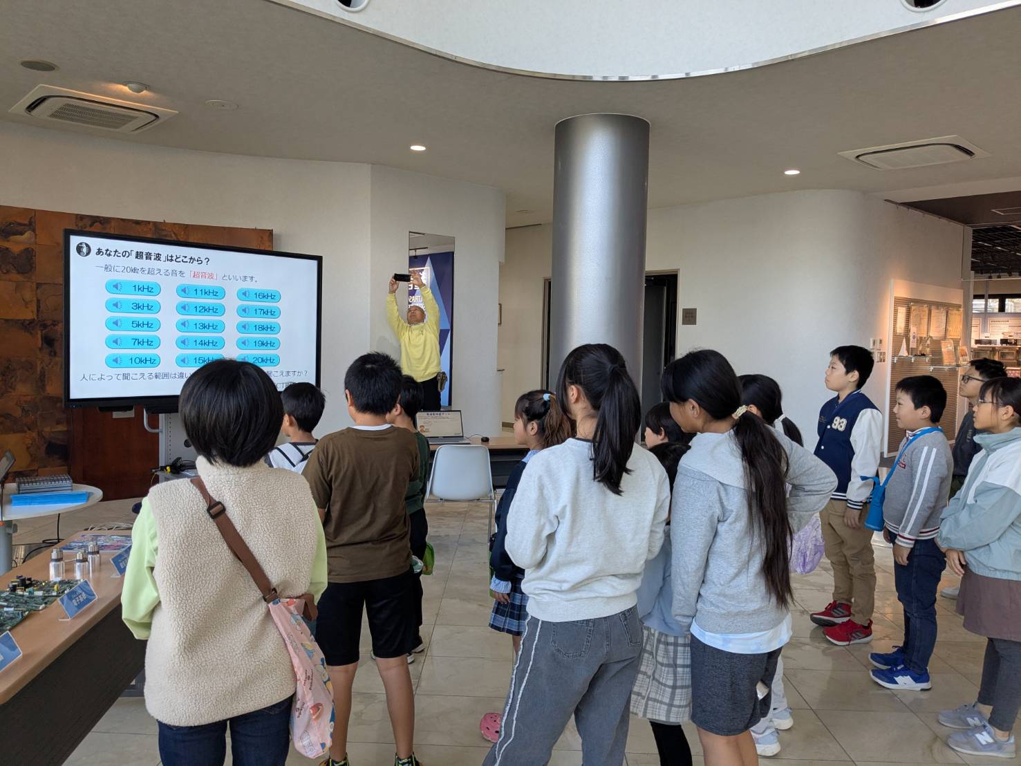 お話を聞いたりクイズをして楽しみました。お話を聞いて温かい気持ちになったかなぁ?それぞれが想像の世界を感じてくれていると嬉しいなぁ…と思います。聞こえない音の不思議~超音波~…2023年11月11日(土) ~本多電子(株)~