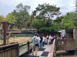 事前アンケートで人気のあった、ライオン・キリン・ミーアキャット等を見学しました。入園前にミーキャットのお散歩をされているご近所の方に出会い、思いがけず触れ合うことができて、楽しい動物を学ぶ講座になりました。サイや鹿の角も触らせていただけて、貴重な体験もできました。